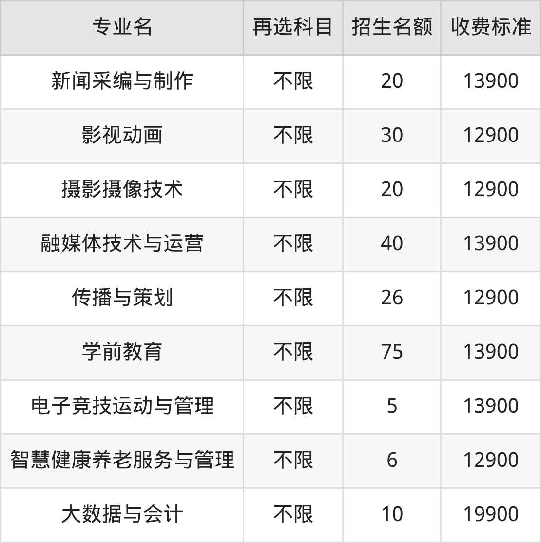 | 专科批 | 物理 | 传播与策划 | 25 |