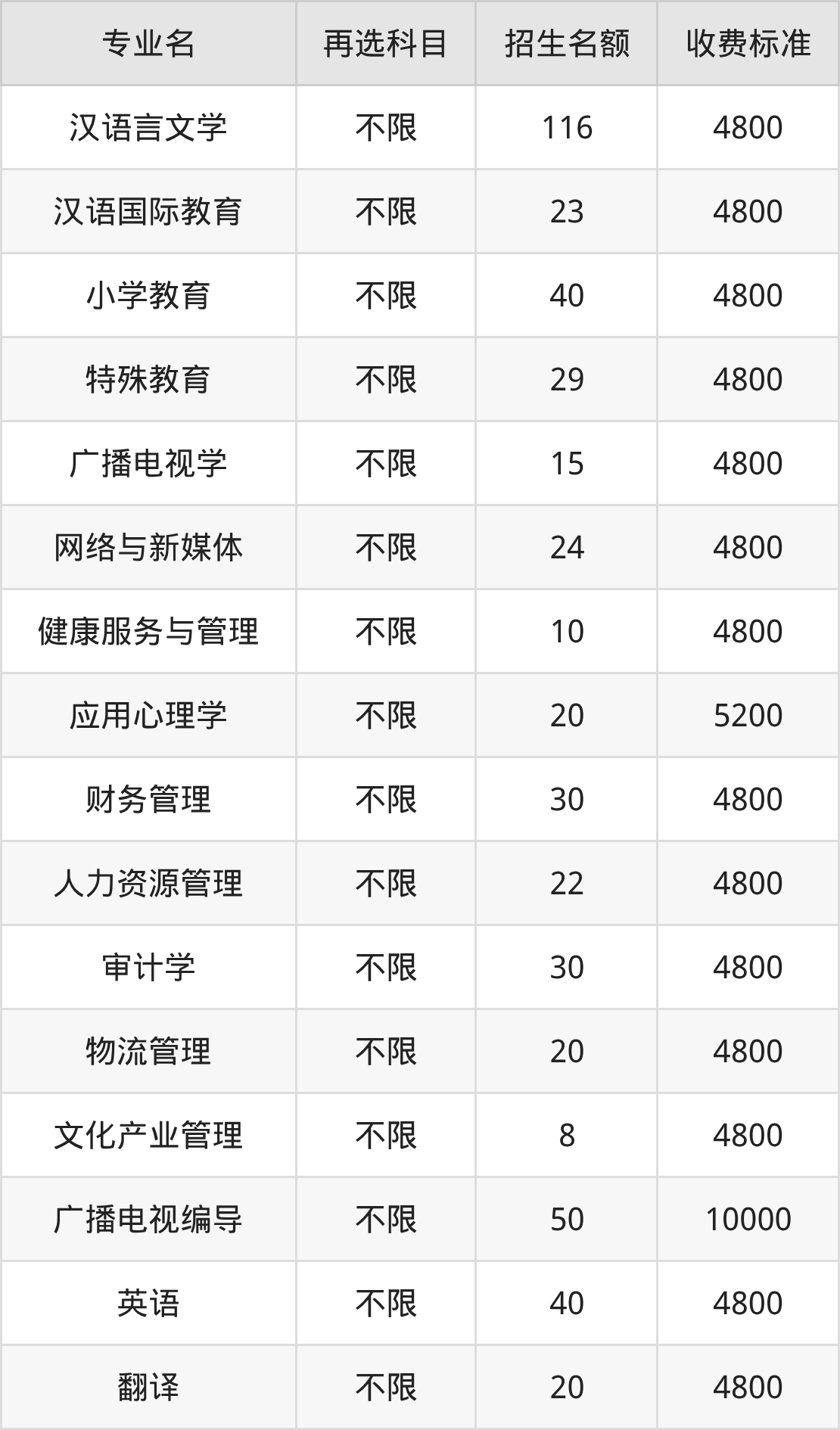 | 本科批B段 | 物理 | 汉语国际教育 | 15 |