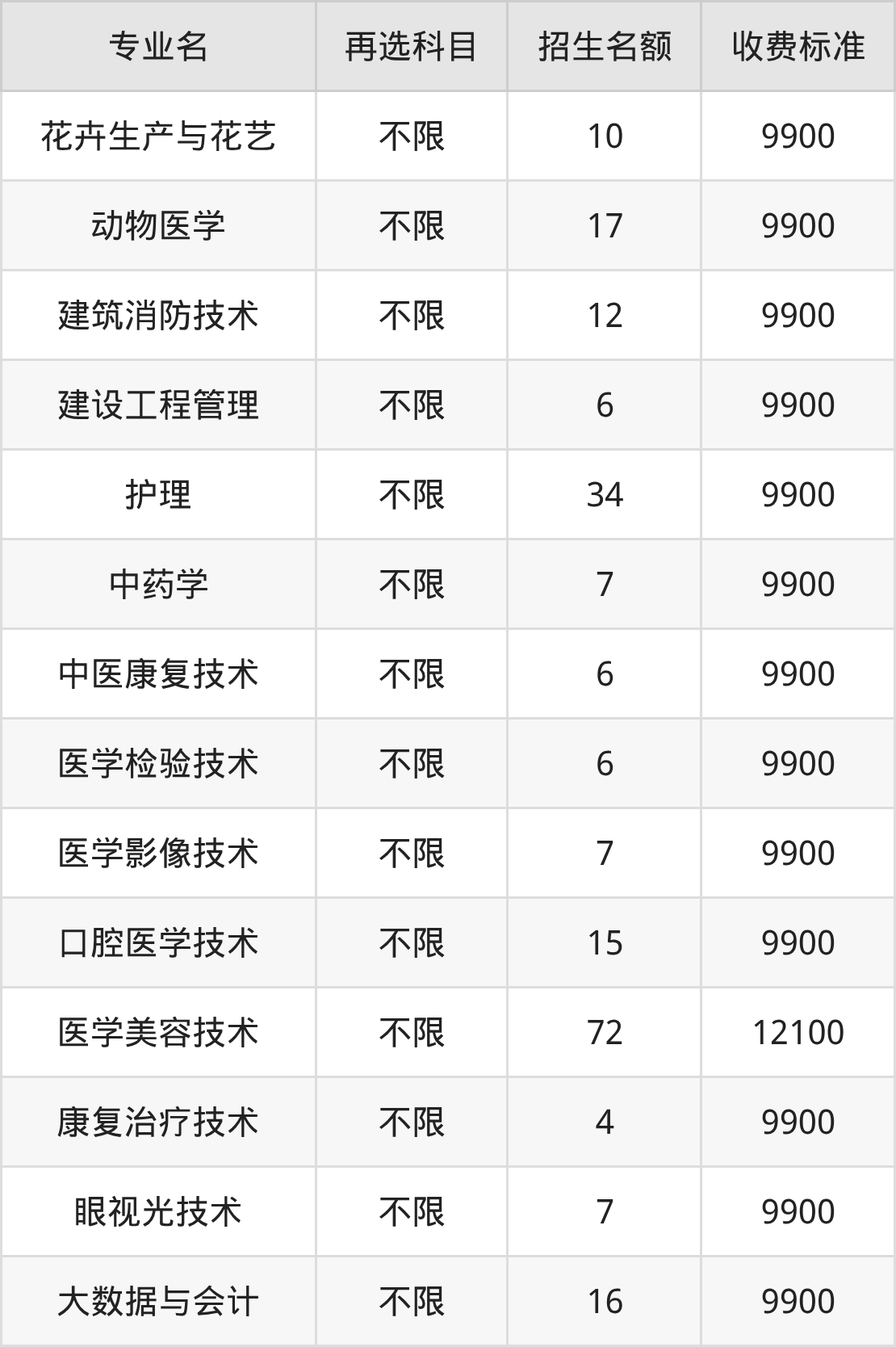 | 高职专科批 | 历史 | 医学美容技术 | 72 |