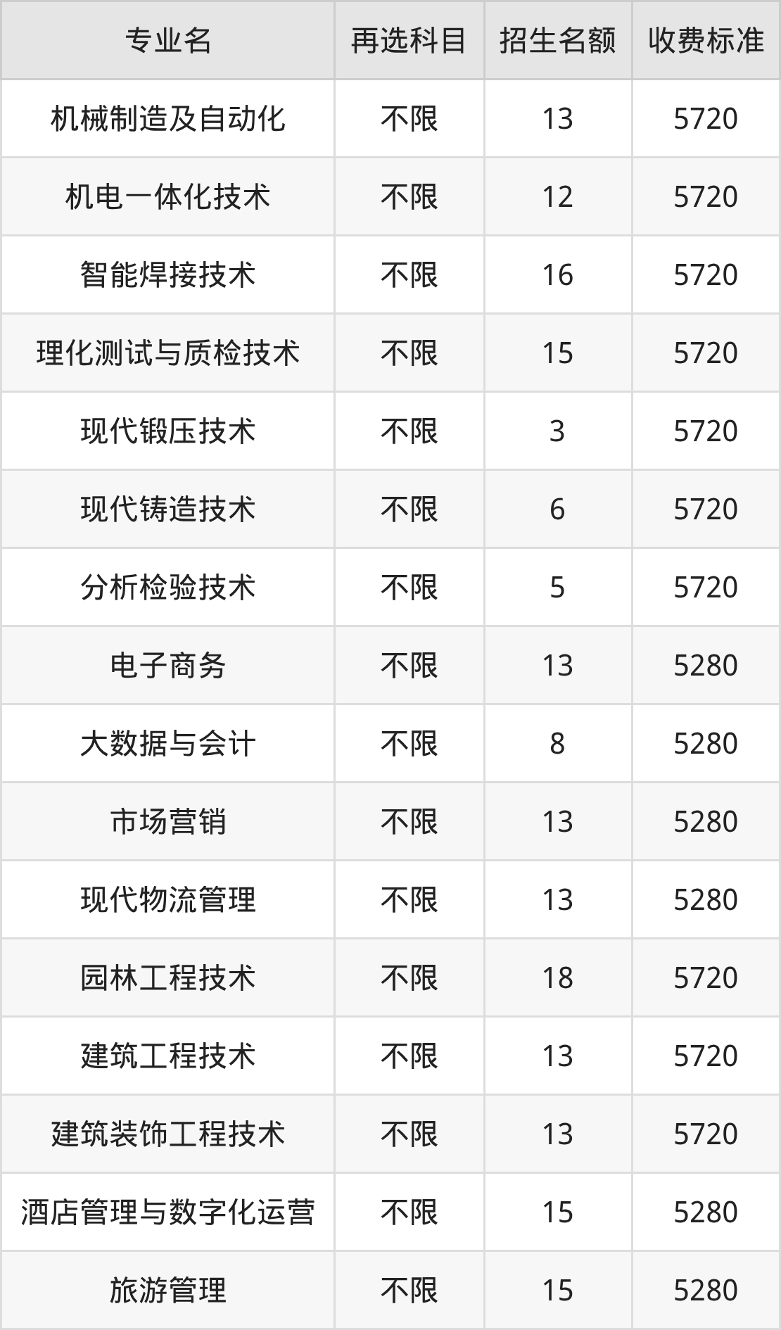 | 高职专科批 | 物理 | 机电一体化技术 | 10 |
