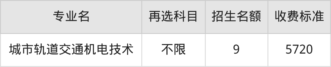 | 高职专科批 | 物理 | 城市轨道交通机电技术 | 8 |