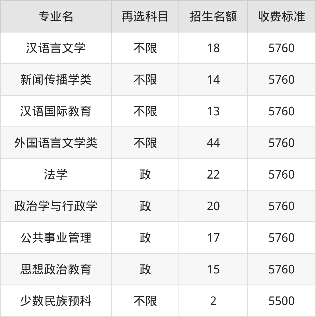 50.经济与贸易类:学费是5760元