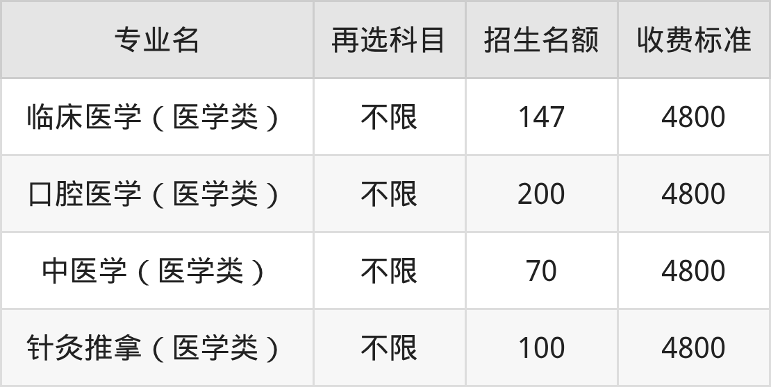 4.中医学(医学类):学费是4800元
