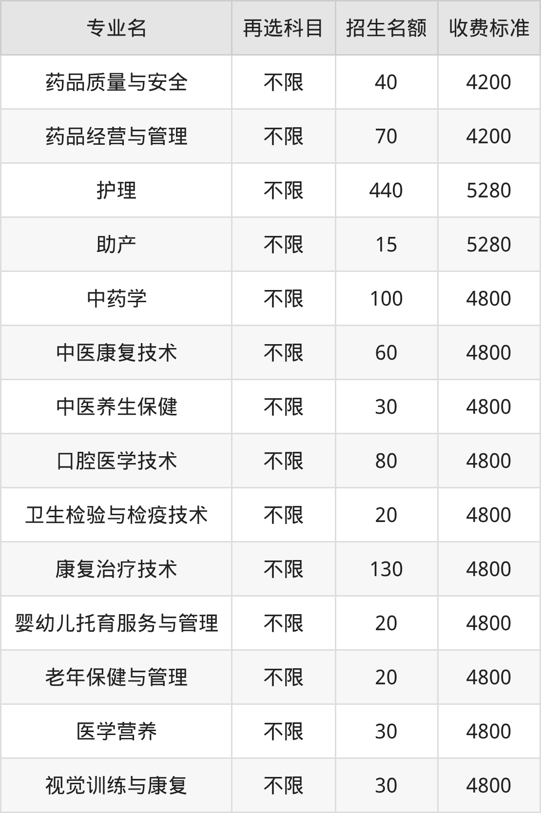 9.卫生检验与检疫技术:学费是4800元