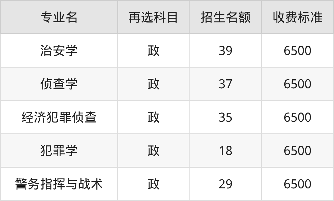| 本科提前批 | 历史 | 警务指挥与战术 | 29 |