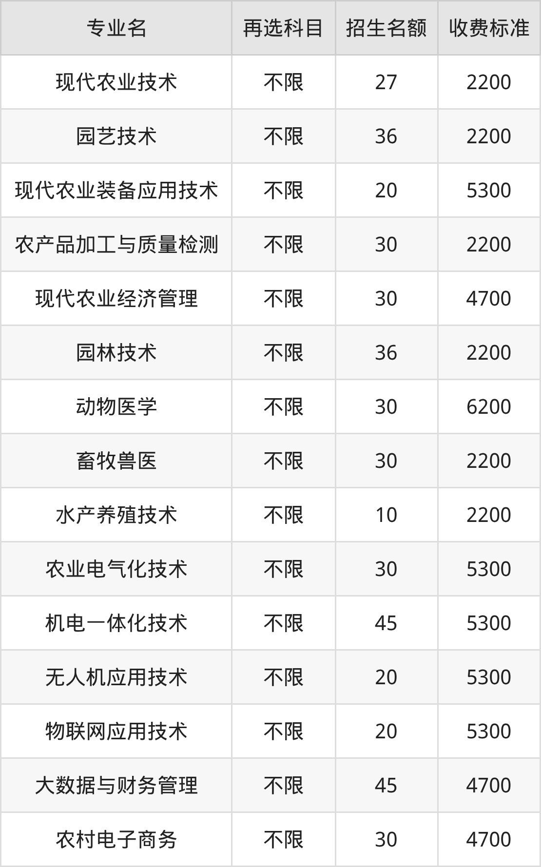 | 专科批 | 历史 | 园艺技术 | 36 |