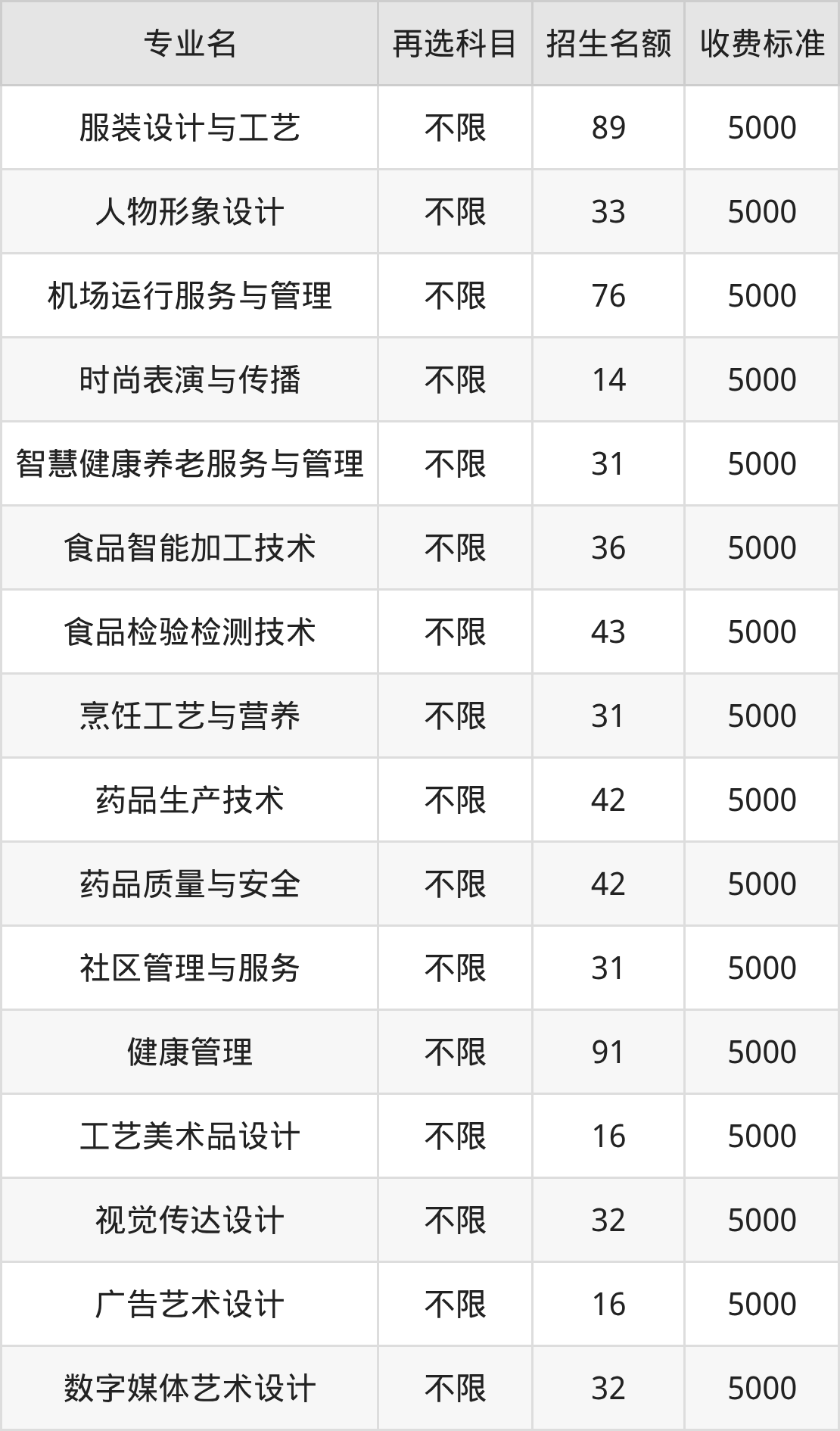 云南轻纺职业学院在历史组高职专科批招生的各个专业,每年的学费是5000元。招生人数最多的专业是学前教育,2025年招231人,学费是5000元。