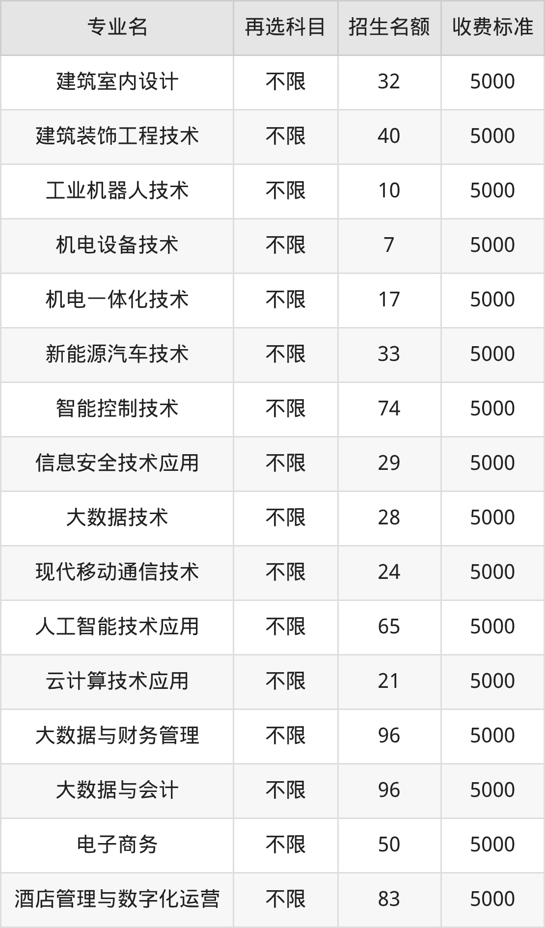 21.机电一体化技术:学费是5000元