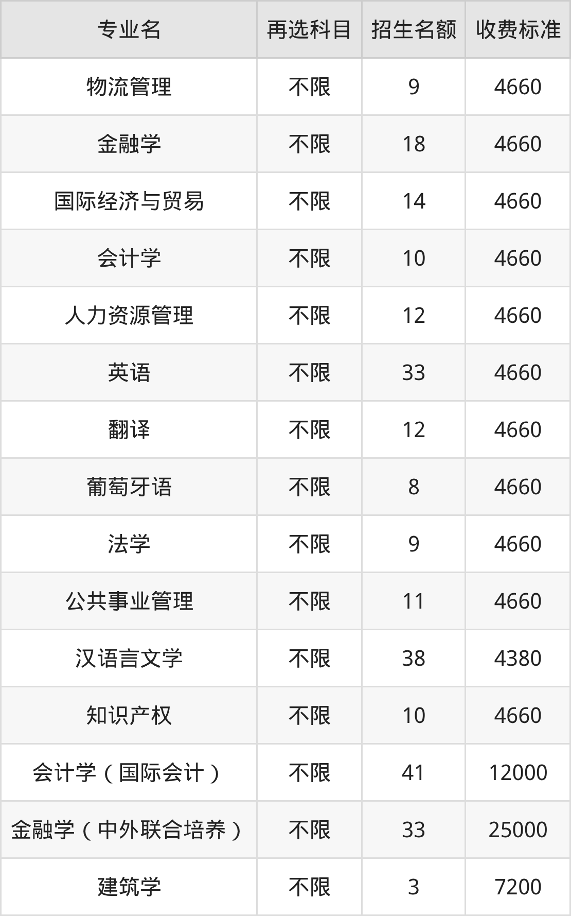 华东交通大学在历史组本科批招生的各个专业,每年的学费是4380元-25000元。招生人数最多的专业是会计学,2025年招41人,学费是12000元。