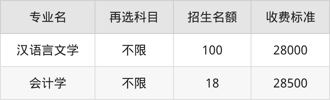| 批次 | 首选 科目 | 专业名 | 招生 名额 |