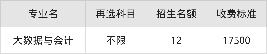 | 高职专科批 | 历史 | 大数据与会计 | 12 |