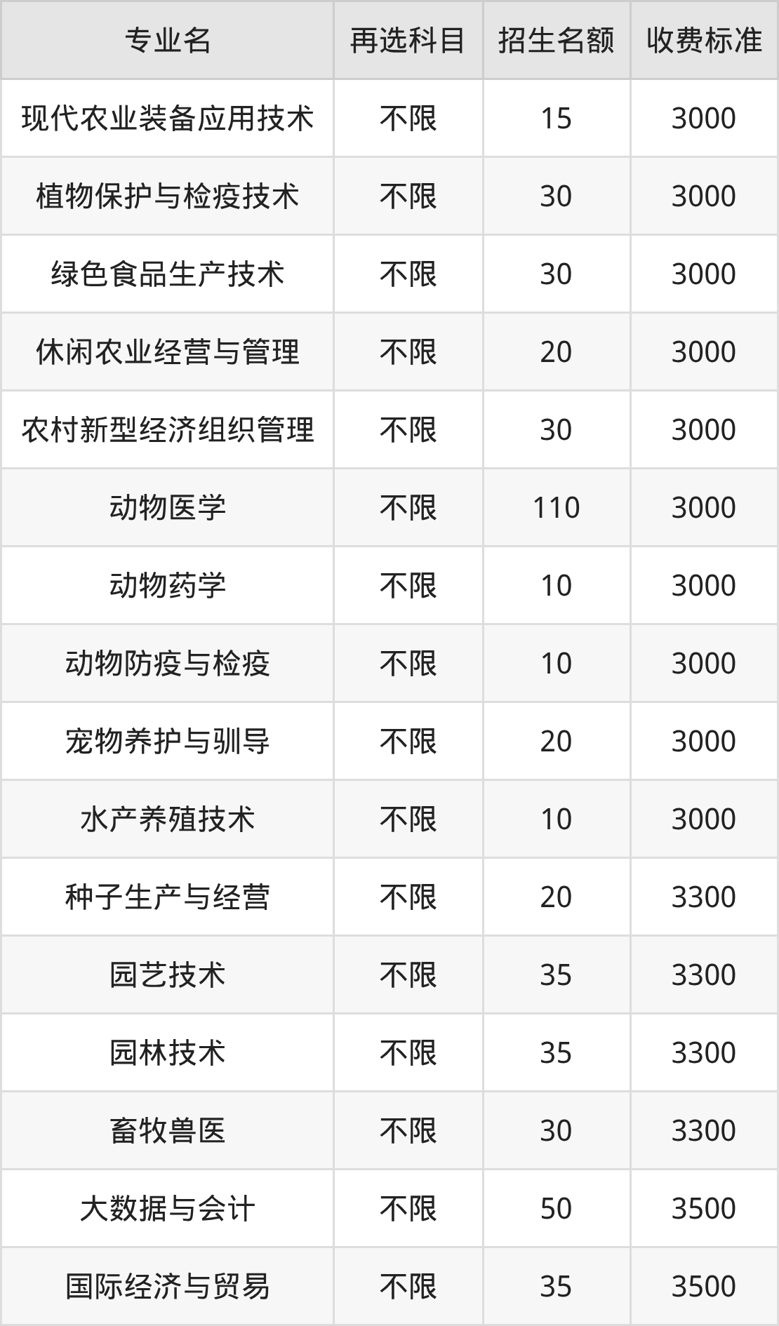 | 高职专科批 | 历史 | 动物医学 | 110 |