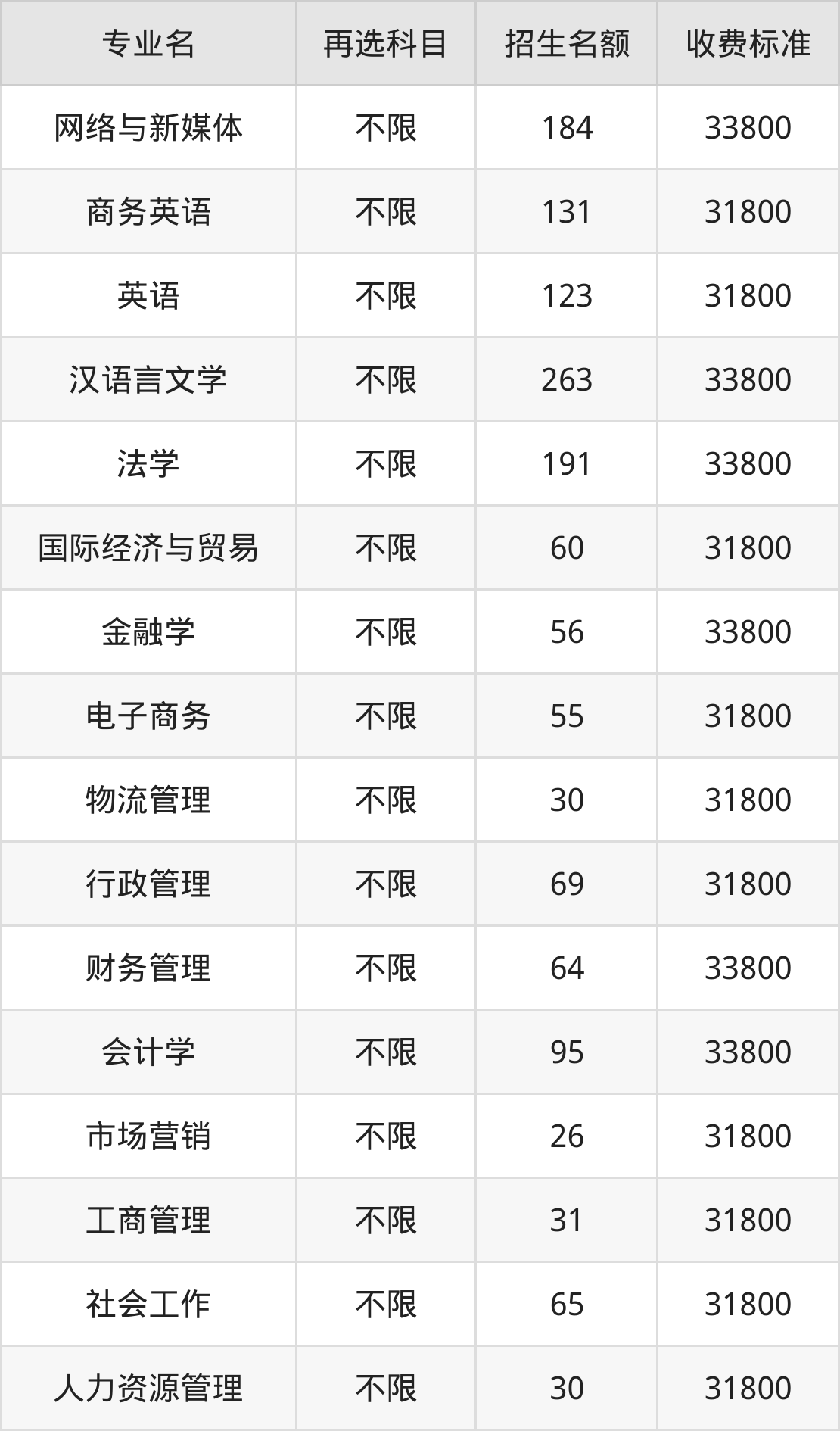 | 本科批 | 物理 | 人力资源管理 | 10 |