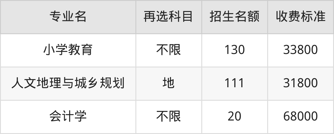 | 批次 | 首选 科目 | 专业名 | 招生 名额 |