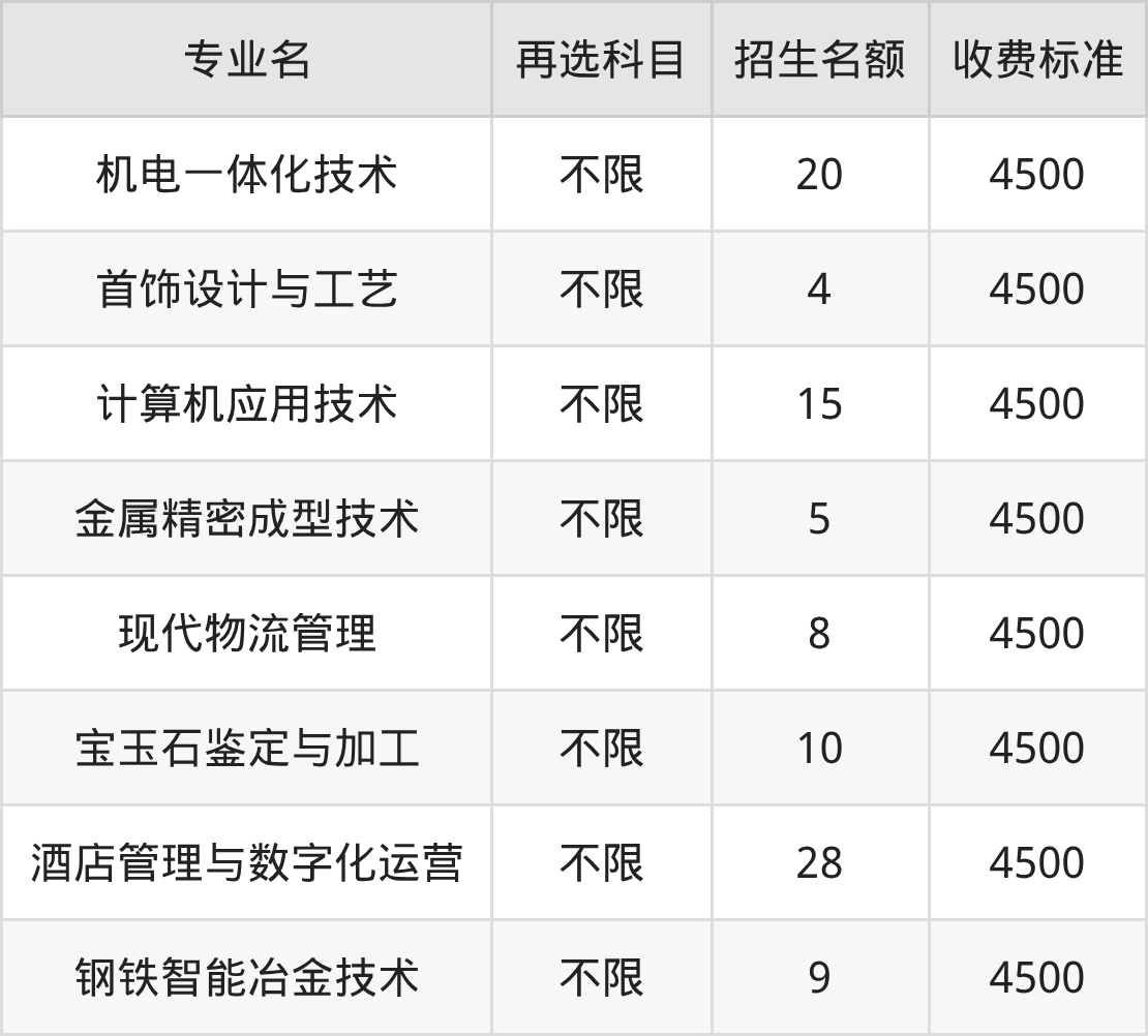| 高职专科批 | 物理 | 钢铁智能冶金技术 | 10 |