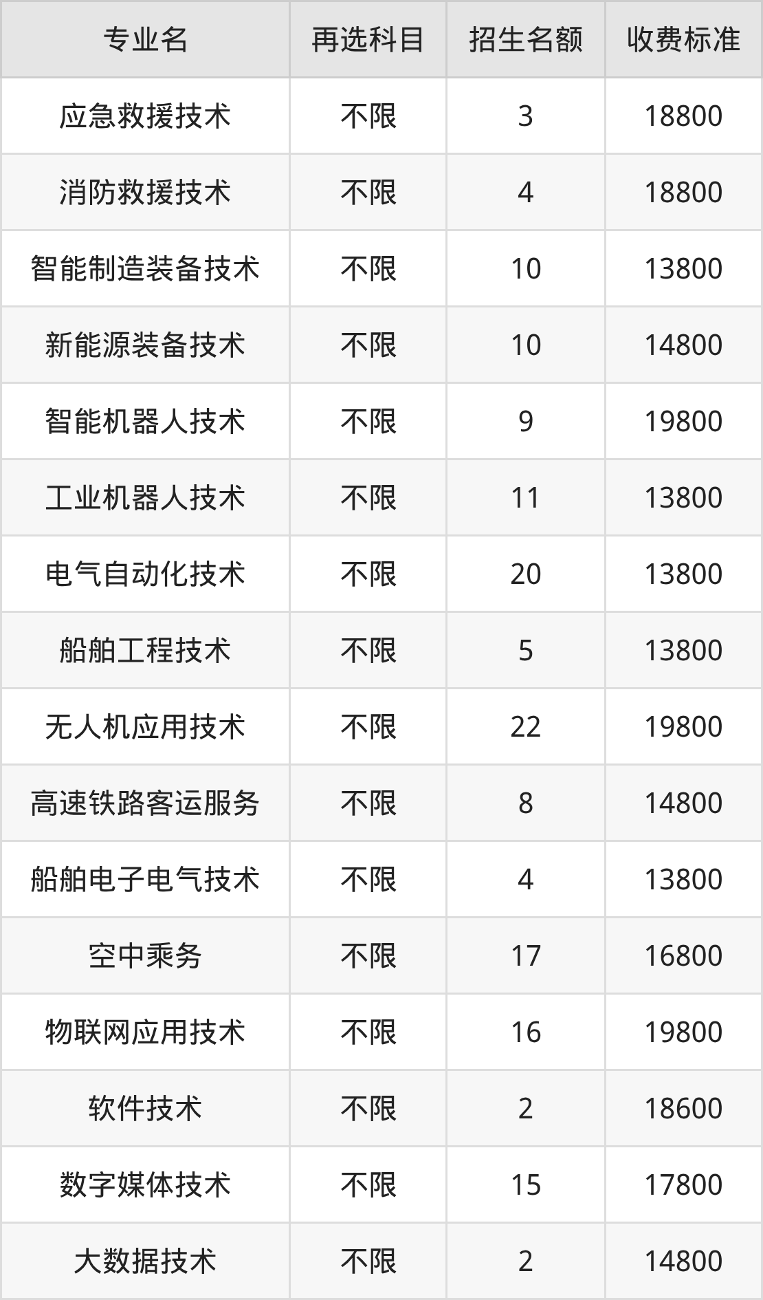 | 高职专科批 | 历史 | 无人机应用技术 | 22 |