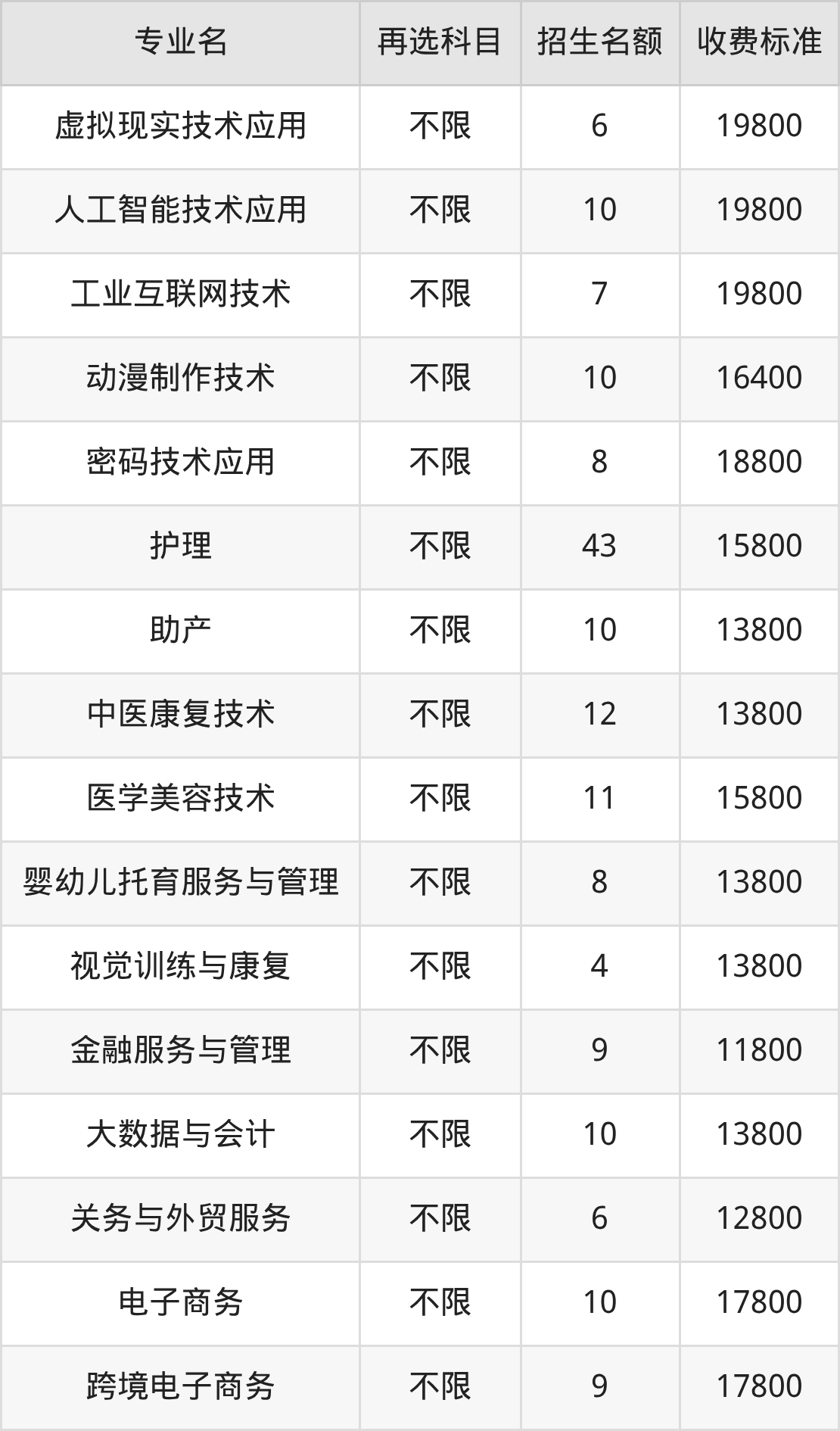 | 高职专科批 | 历史 | 虚拟现实技术应用 | 6 |