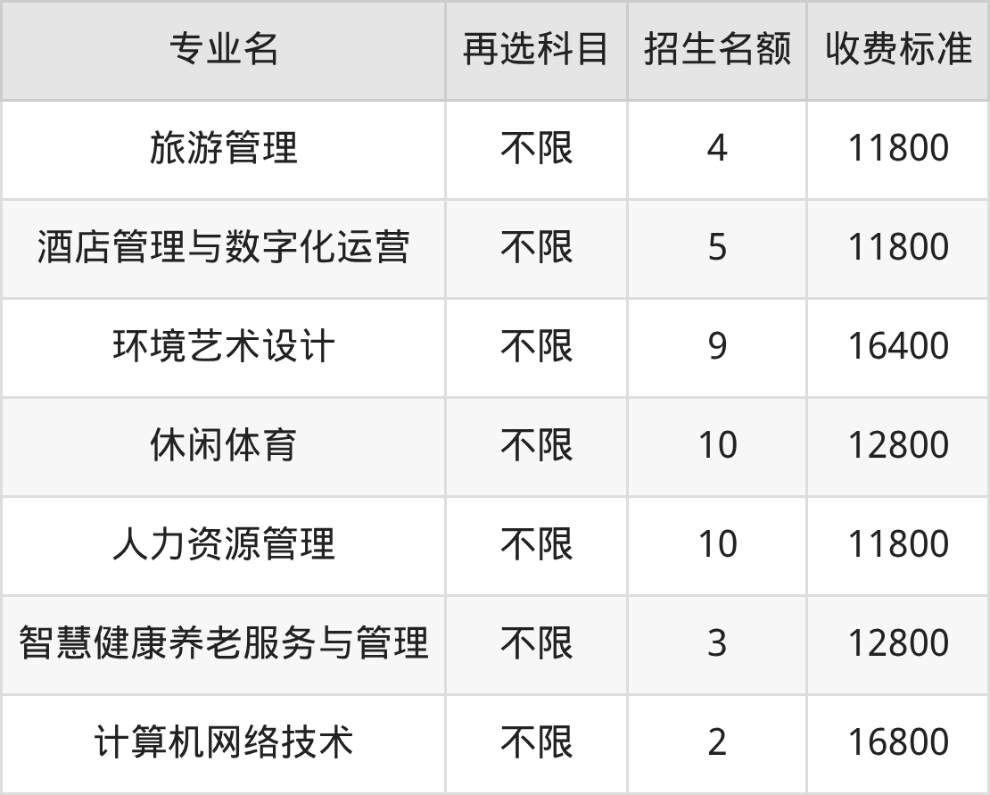 | 高职专科批 | 物理 | 旅游管理 | 12 |