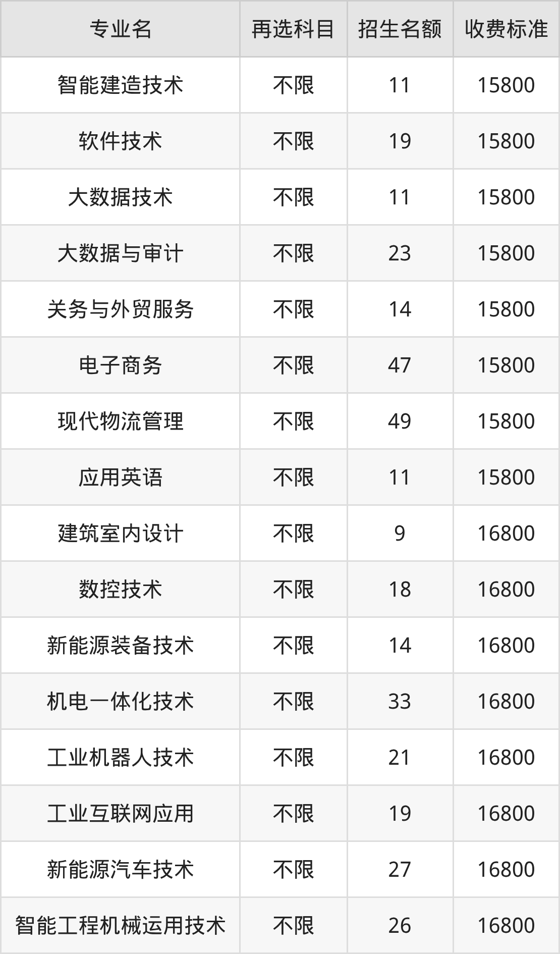 | 高职专科批 | 历史 | 智能建造技术 | 11 |