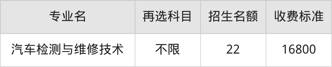 | 高职专科批 | 历史 | 汽车检测与维修技术 | 22 |