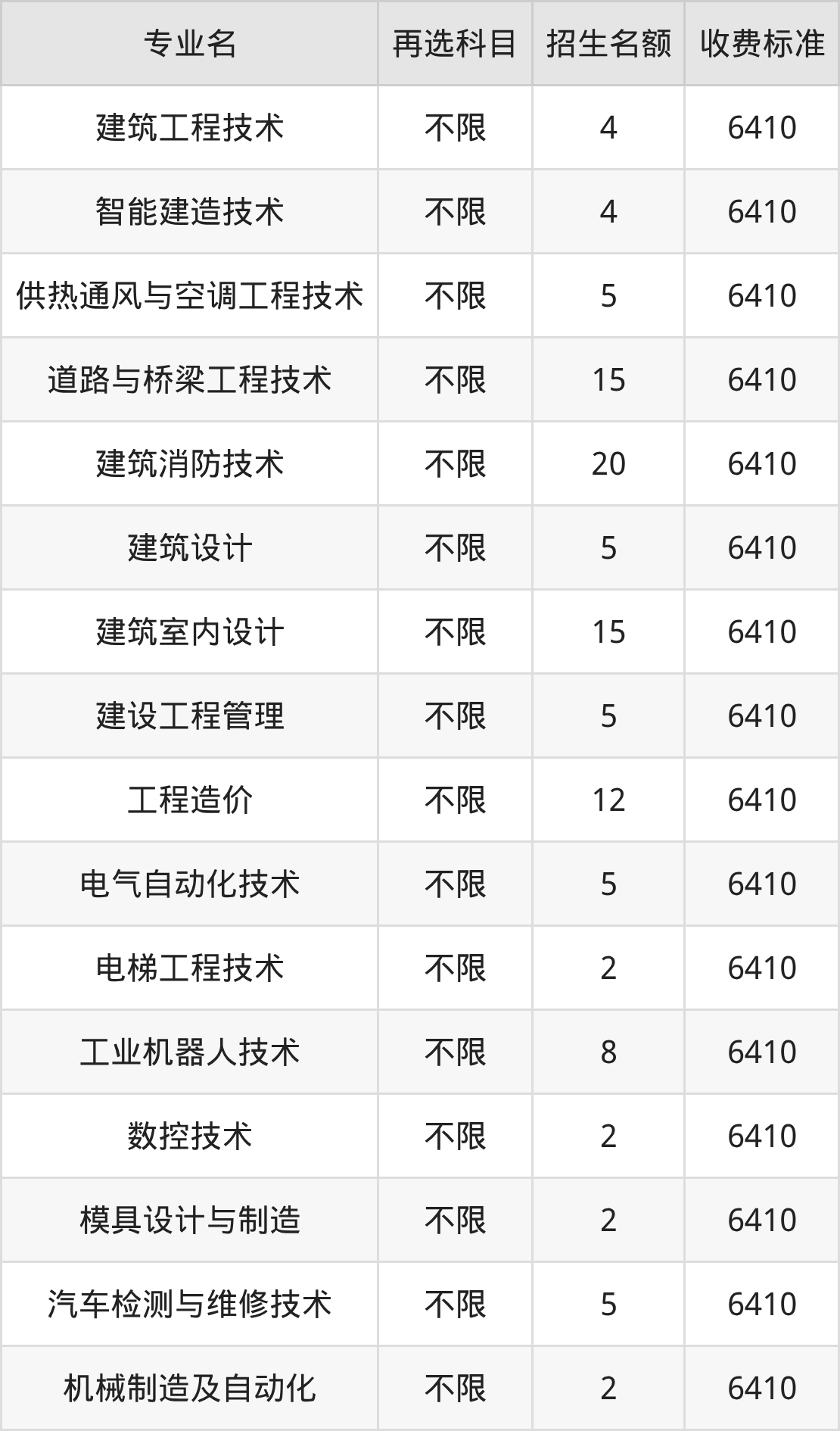 | 专科高职批 | 物理 | 建筑设计 | 10 |