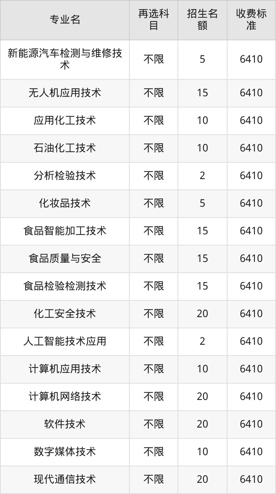 | 专科高职批 | 历史 | 石油化工技术 | 10 |