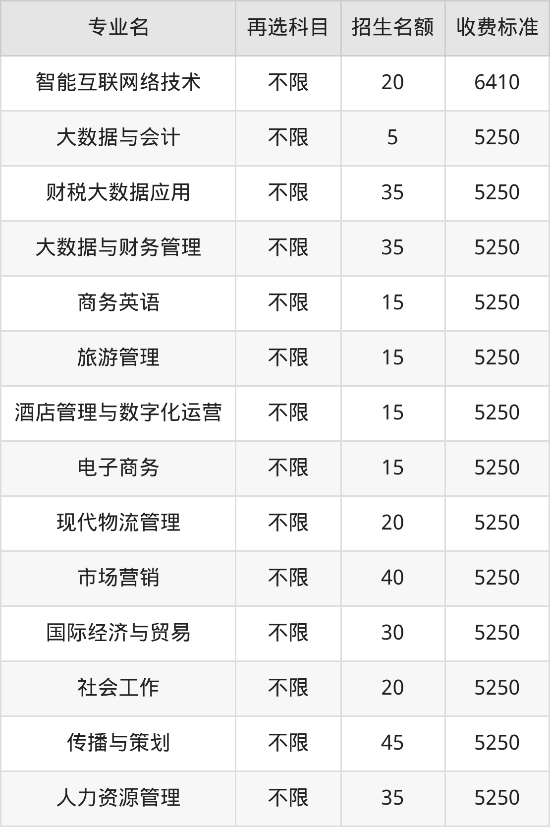 | 专科高职批 | 物理 | 大数据与财务管理 | 15 |