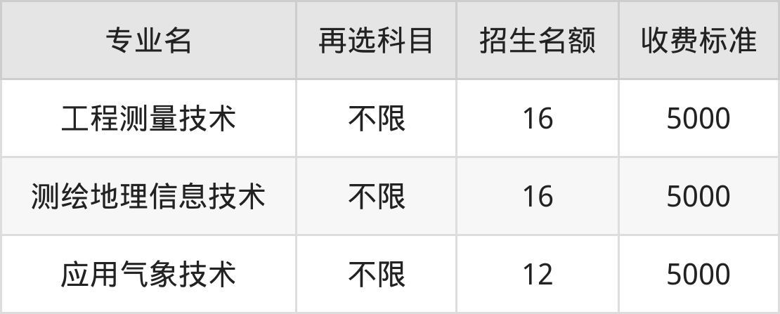 | 专科提前批 | 历史 | 工程测量技术 | 16 |