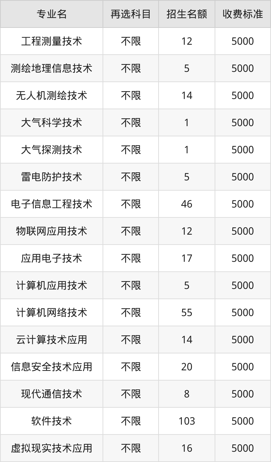 | 高职专科批 | 历史 | 测绘地理信息技术 | 5 |