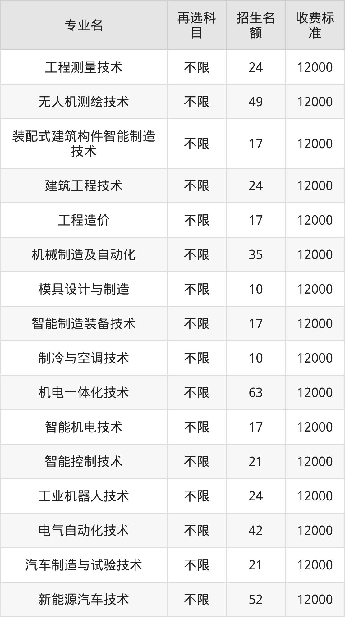 15.汽车制造与试验技术:学费是12000元