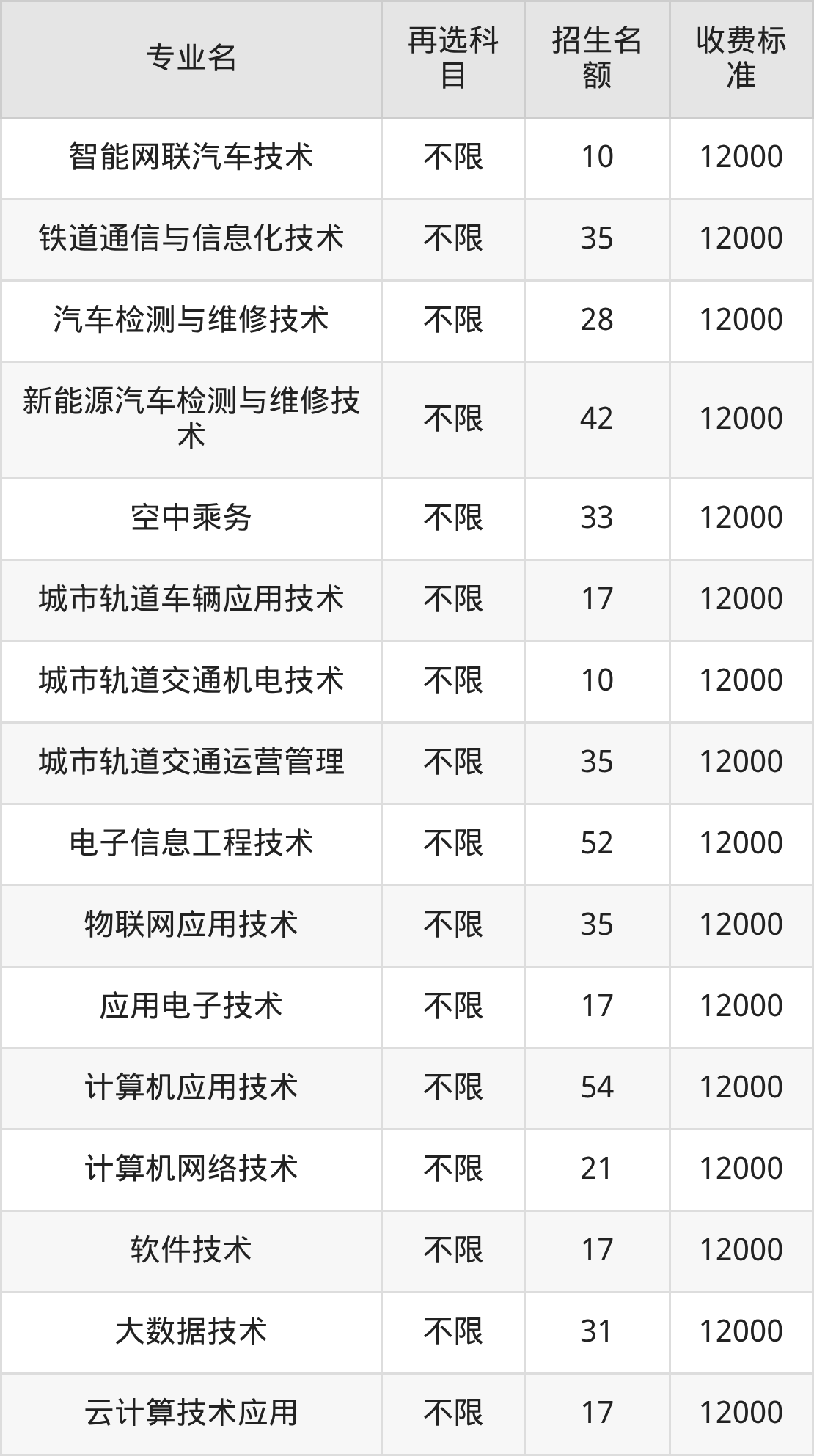 18.铁道通信与信息化技术:学费是12000元