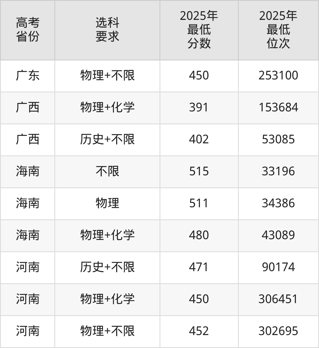 在2025年广东高考物理类招生时,公办本科收分最低的是铜仁职业技术大学508组,最低分是228分、位次是433839位。再看广州理工学院,2025年在广东物理类的最低录取分数线是446分,最低位次是259886位。