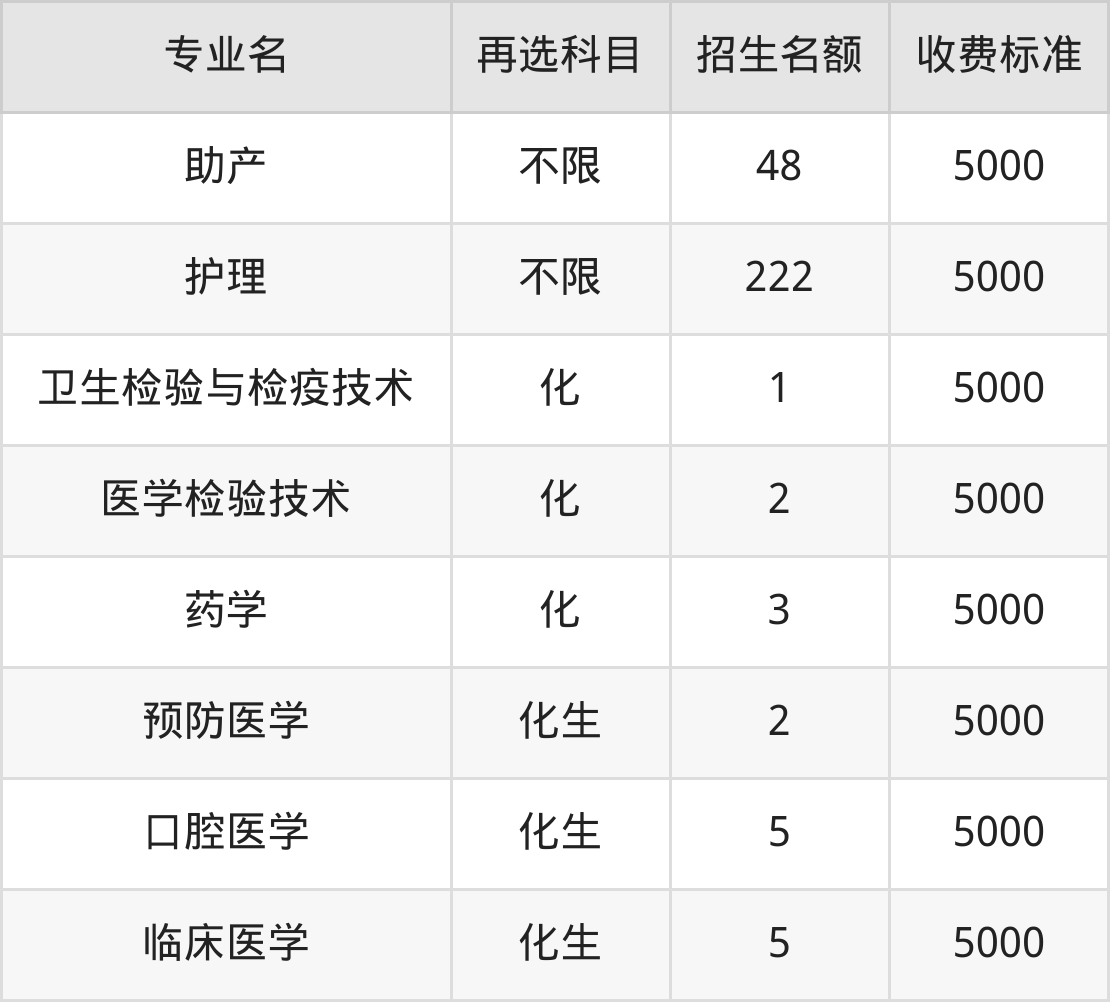 赣南卫生健康职业学院物理组专科提前批共计3个招生专业,各专业每年的学费是5000元。