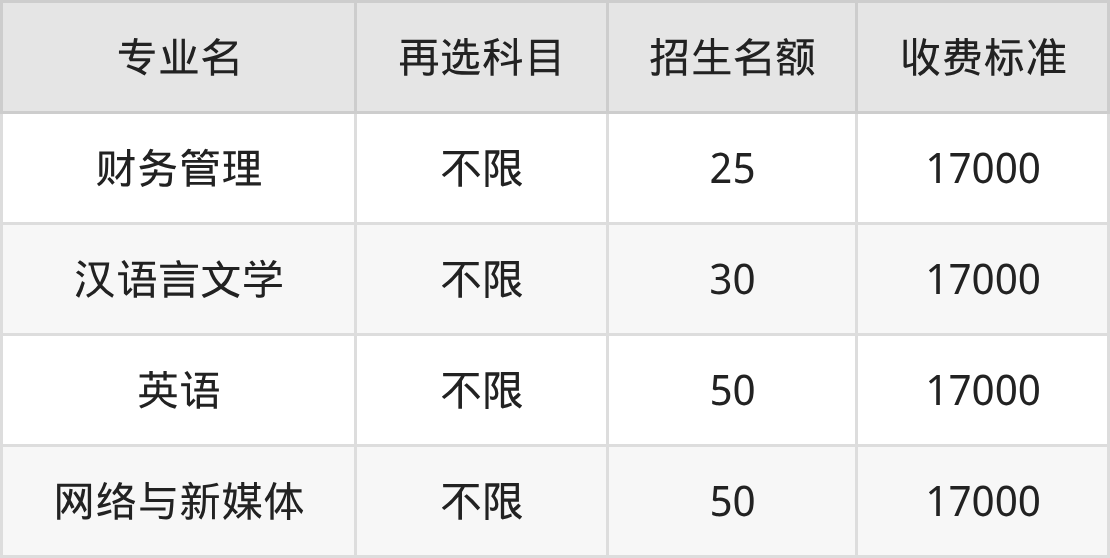 | 本科批 | 历史 | 汉语言文学 | 30 |
