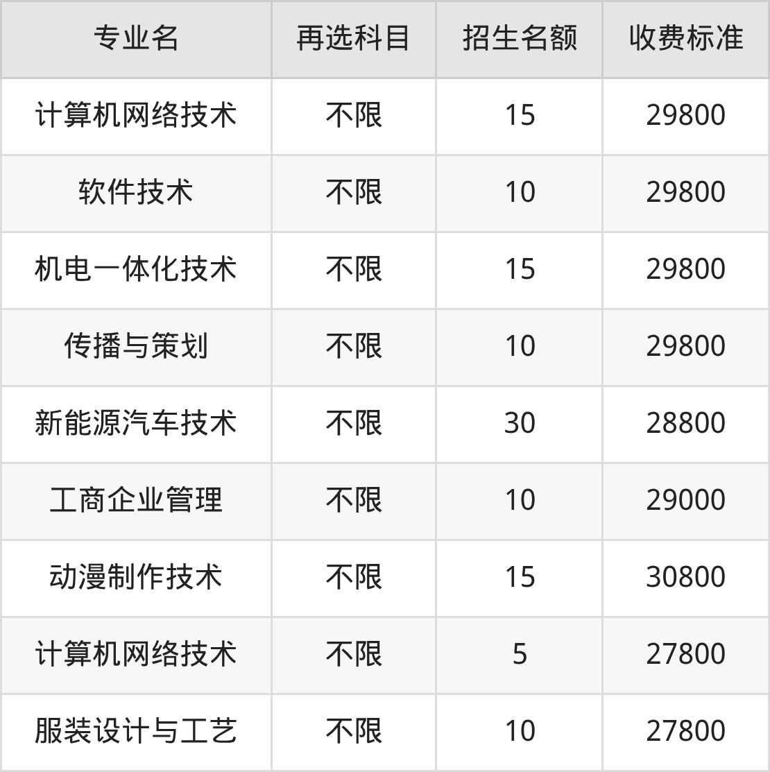 | 专科高职批 | 物理 | 动漫制作技术 | 30 |
