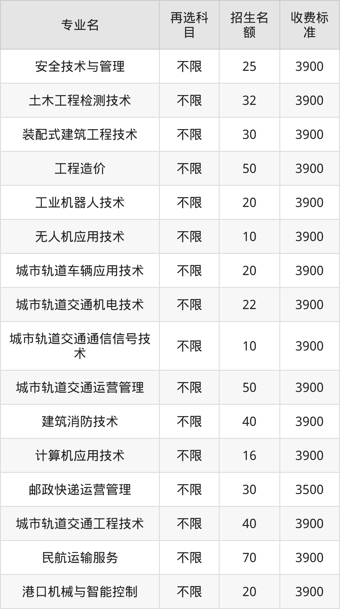 二、安徽交通职业技术学院各专业收费标准