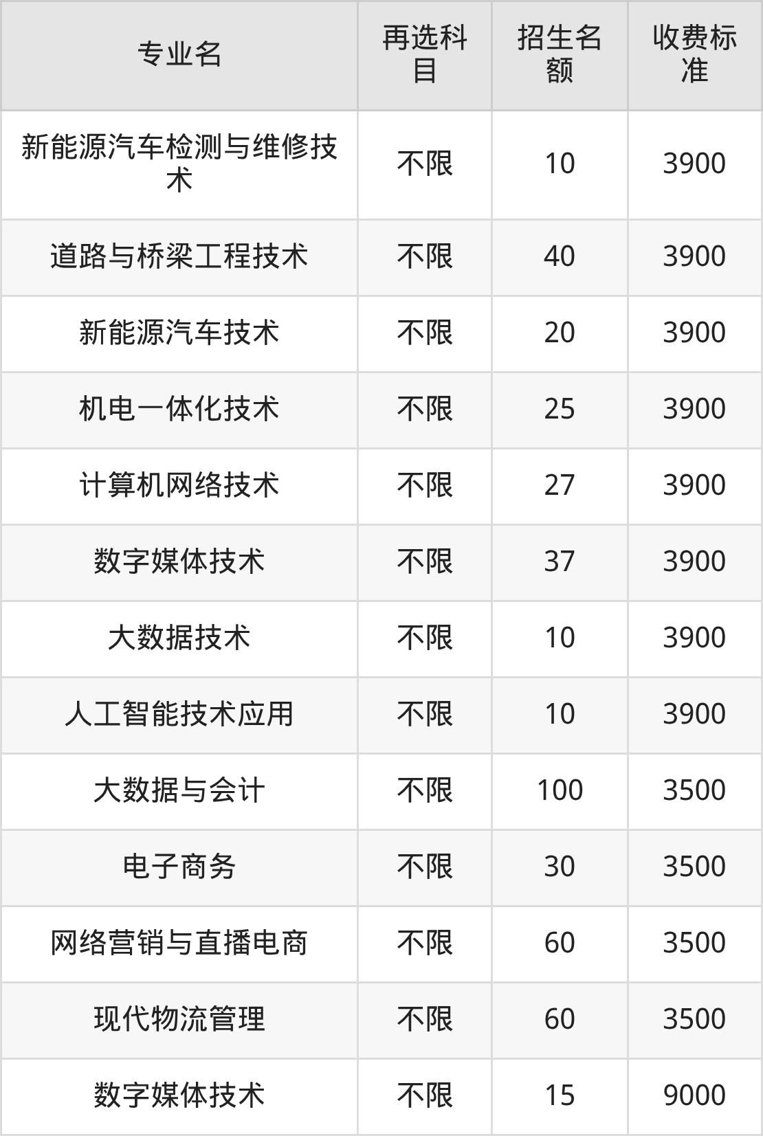 | 高职专科批 | 物理 | 数字媒体技术 | 50 |