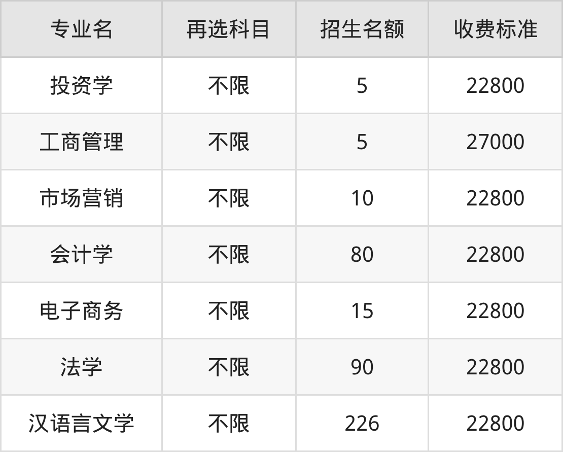 8.汉语言文学:学费是22800元