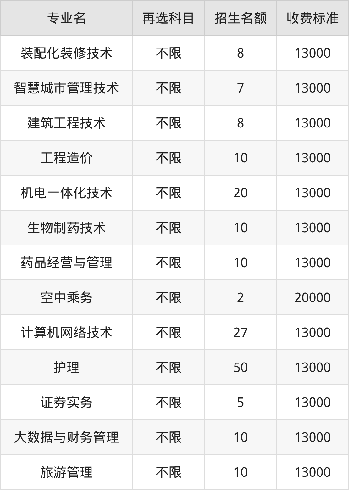 | 高职高专批 | 历史 | 工程造价 | 10 |