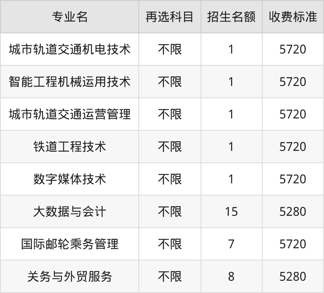 | 高职专科批 | 历史 | 城市轨道交通运营管理 | 1 |