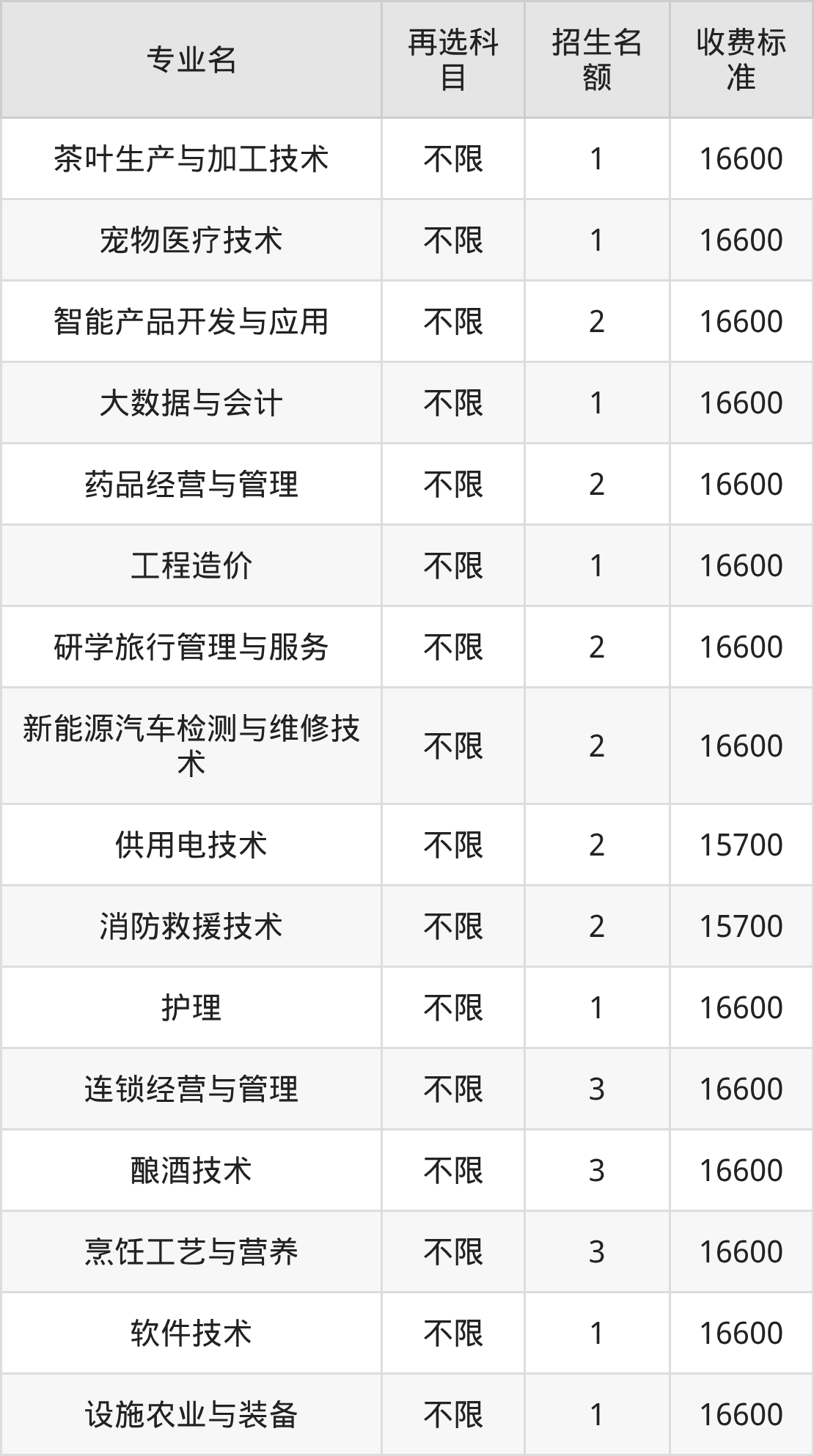 | 高职专科批 | 历史 | 茶叶生产与加工技术 | 1 |
