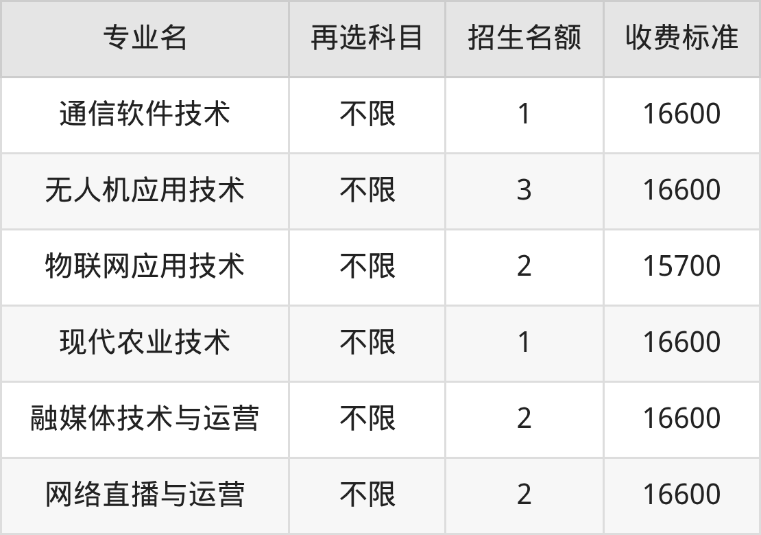 | 高职专科批 | 物理 | 通信软件技术 | 1 |