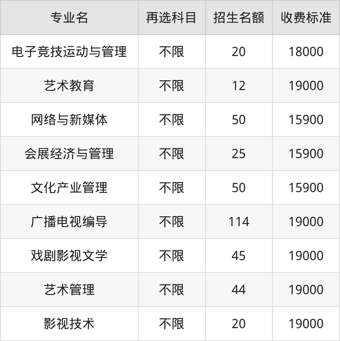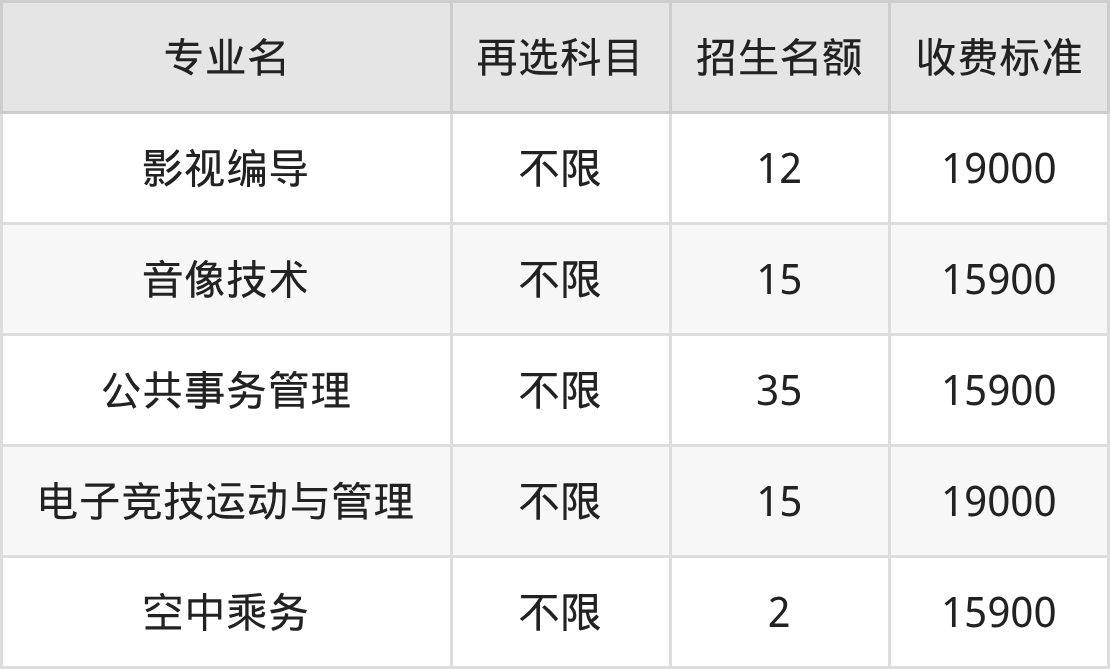 | 高职专科批 | 历史 | 音像技术 | 15 |