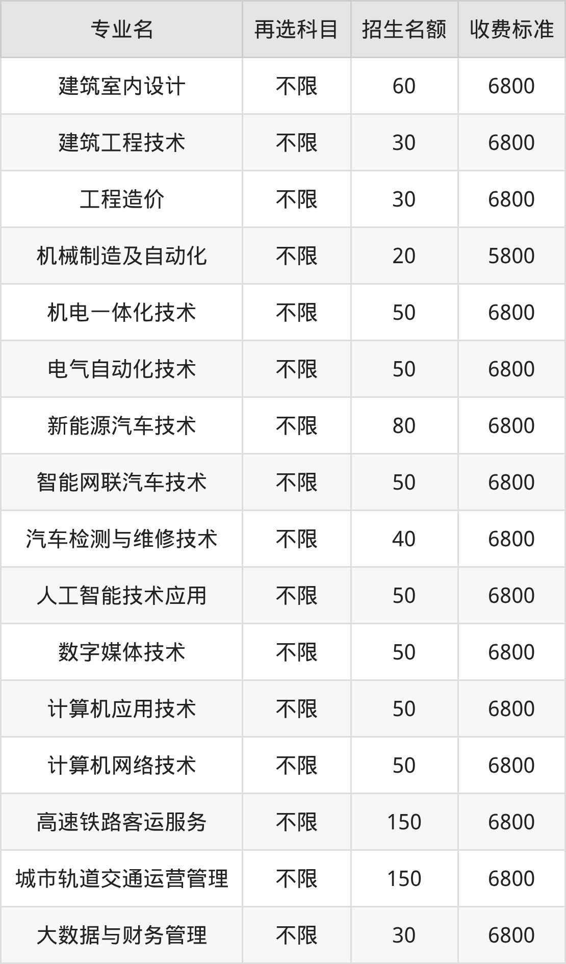 6.机电一体化技术:学费是6800元