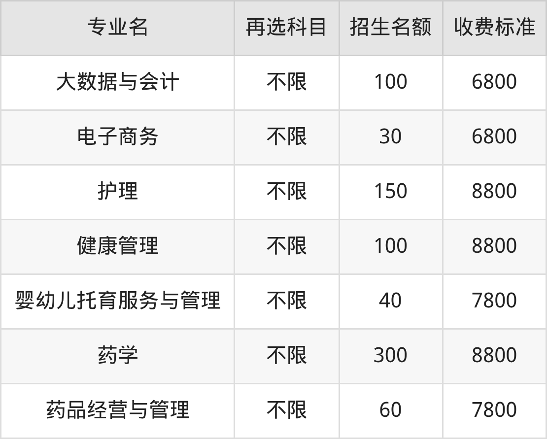 | 高职专科批 | 历史 | 健康管理 | 100 |