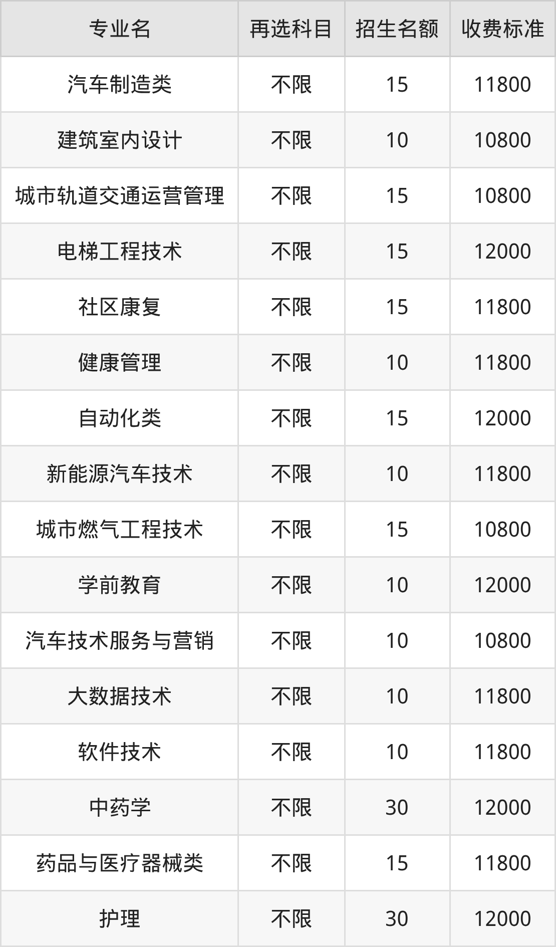| 高职专科批 | 历史 | 电梯工程技术 | 15 |