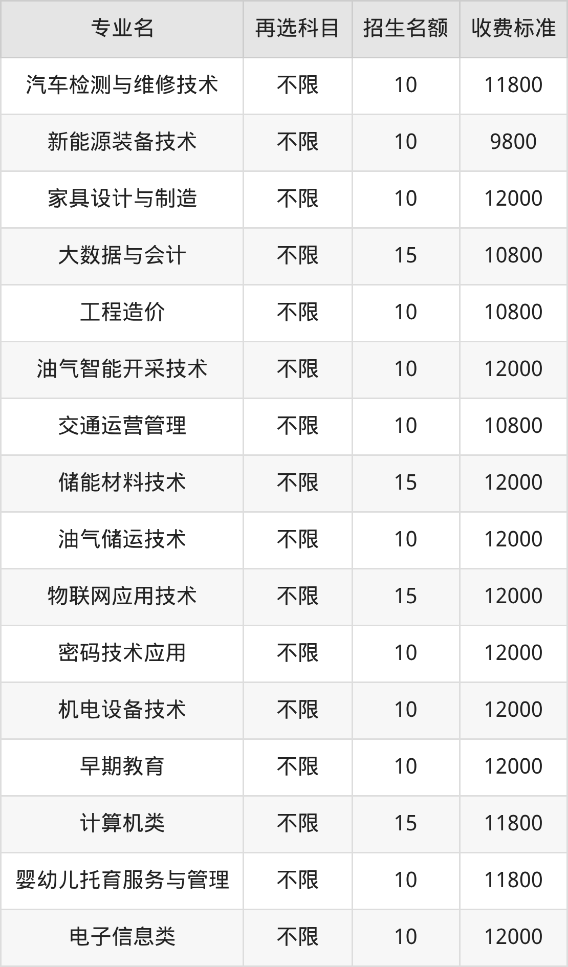 | 高职专科批 | 历史 | 新能源装备技术 | 10 |