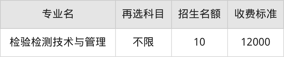 | 高职专科批 | 历史 | 检验检测技术与管理 | 10 |