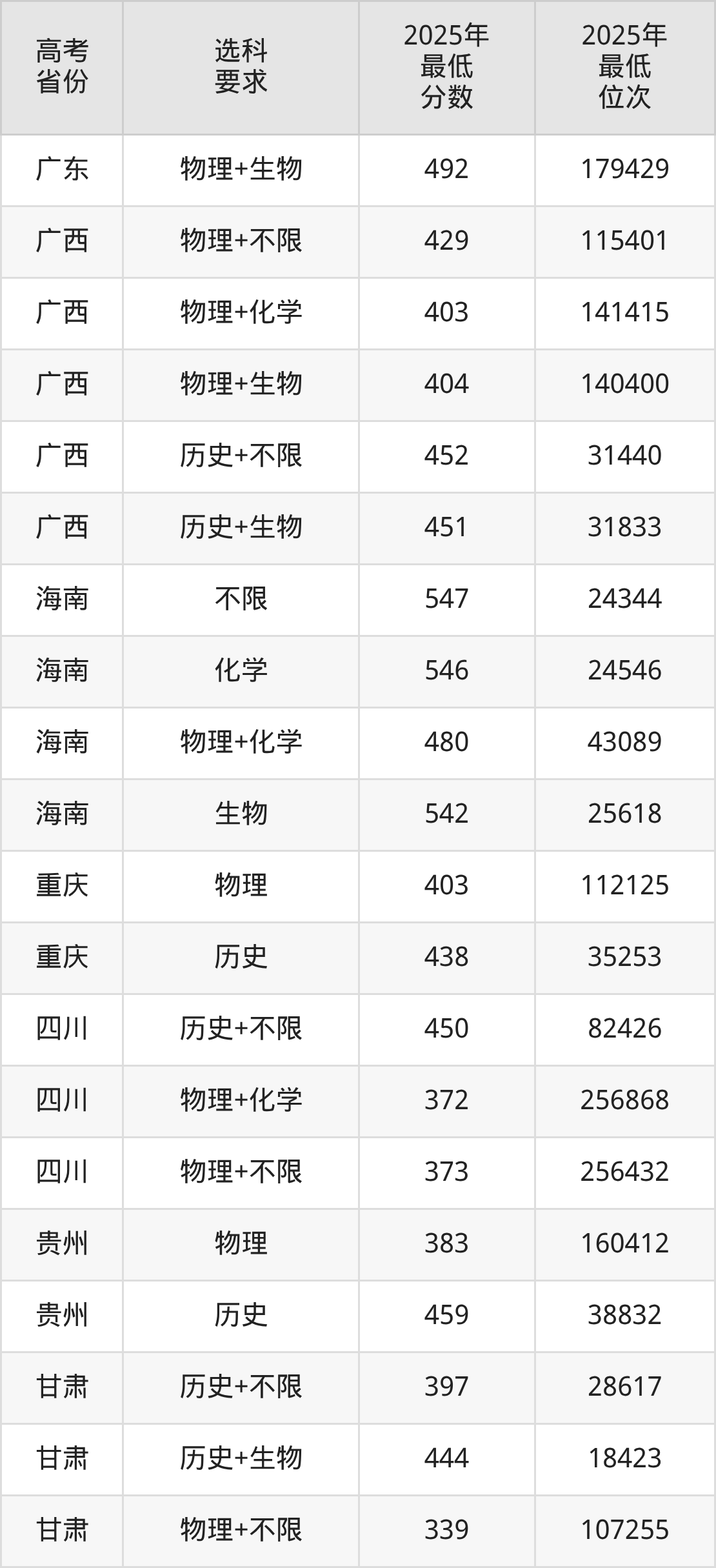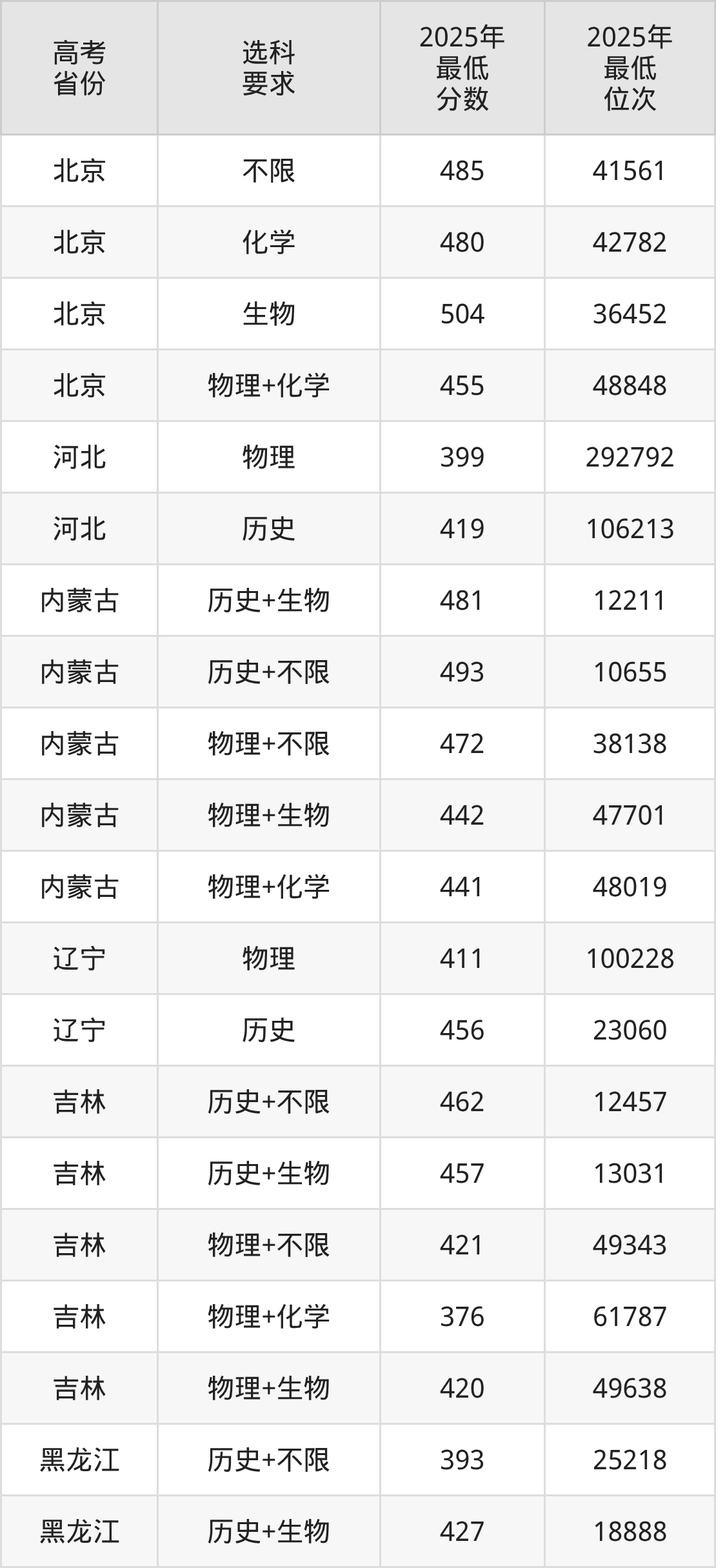 在2025年河北高考物理类招生时,公办本科收分最低的是兴安职业技术大学,最低分是286分、位次是349891位。再看北京中医药大学东方学院,2025年在河北物理类的最低录取分数线是399分,最低位次是292792位。