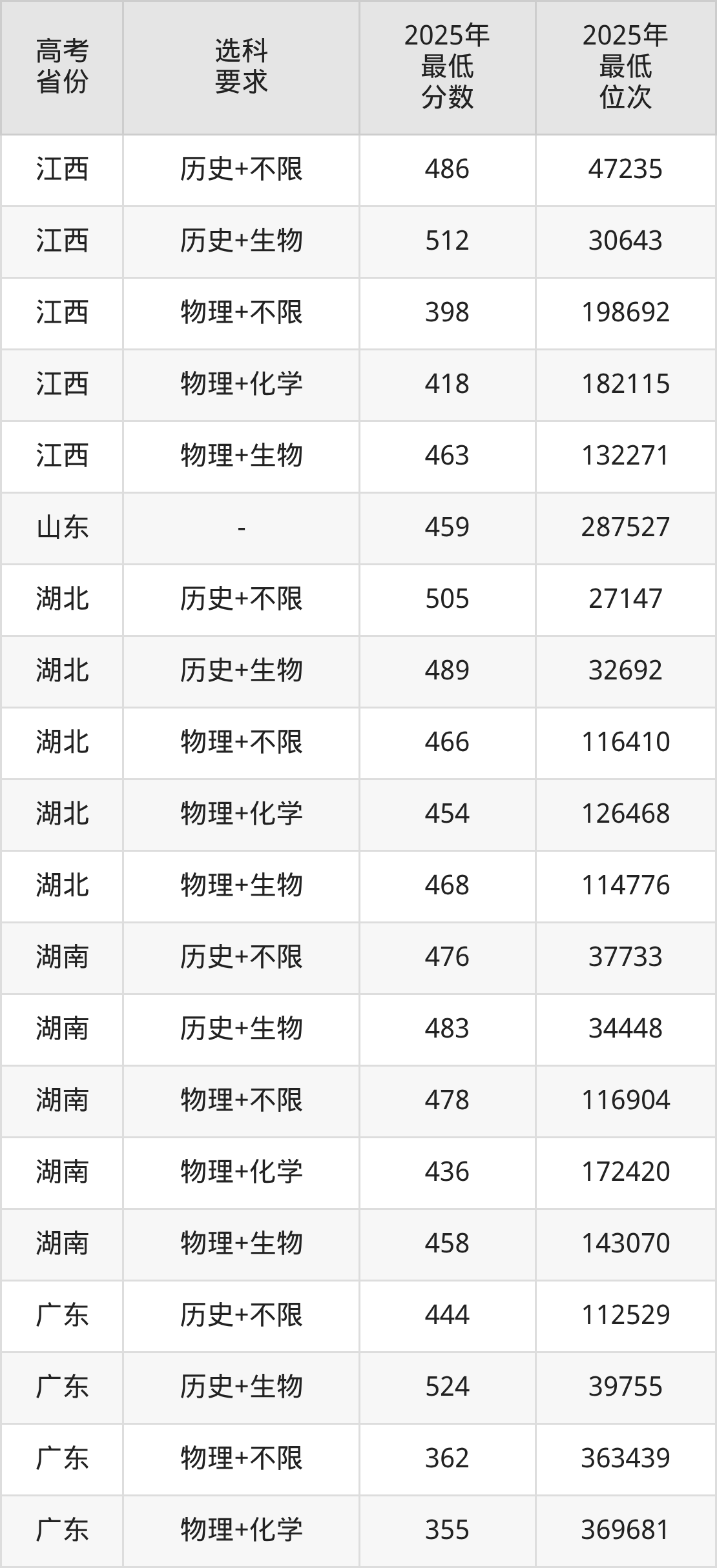 (2)针灸推拿学,最低分是496,录取位次是52355。